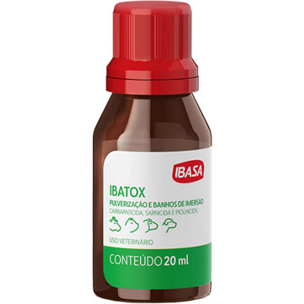 Não deixar o animal lamber a pelagem úmida com o produto. Durante e após o banho com Ibatox, não deixar o animal ao sol. Aplicar o produto no animal em local ventilado. Não banhar quando há ameaça de chuva ou calor intenso. Usar pulverização para animais menores devido ao risco de afogamento em banheiro. Não reutilizar as embalagens vazias. Não guardar ou aplicar o produto junto de alimentos, bebidas, medicamentos, produtos de higiene e domésticos. Evitar contato do produto com a pele, caso aconteça, lavar com água e sabão. O componente ativo do Ibatox (Amitraz), quando introduzido no organismo causa depressão do sistema nervoso central, devendo ser administrado tratamento analéptico sintomático. Caso tenha ocorrido ingestão acidental, provocar vômito administrando, por via oral, uma colher de sopa de sal (cloreto de sódio) em um copo de água morna.